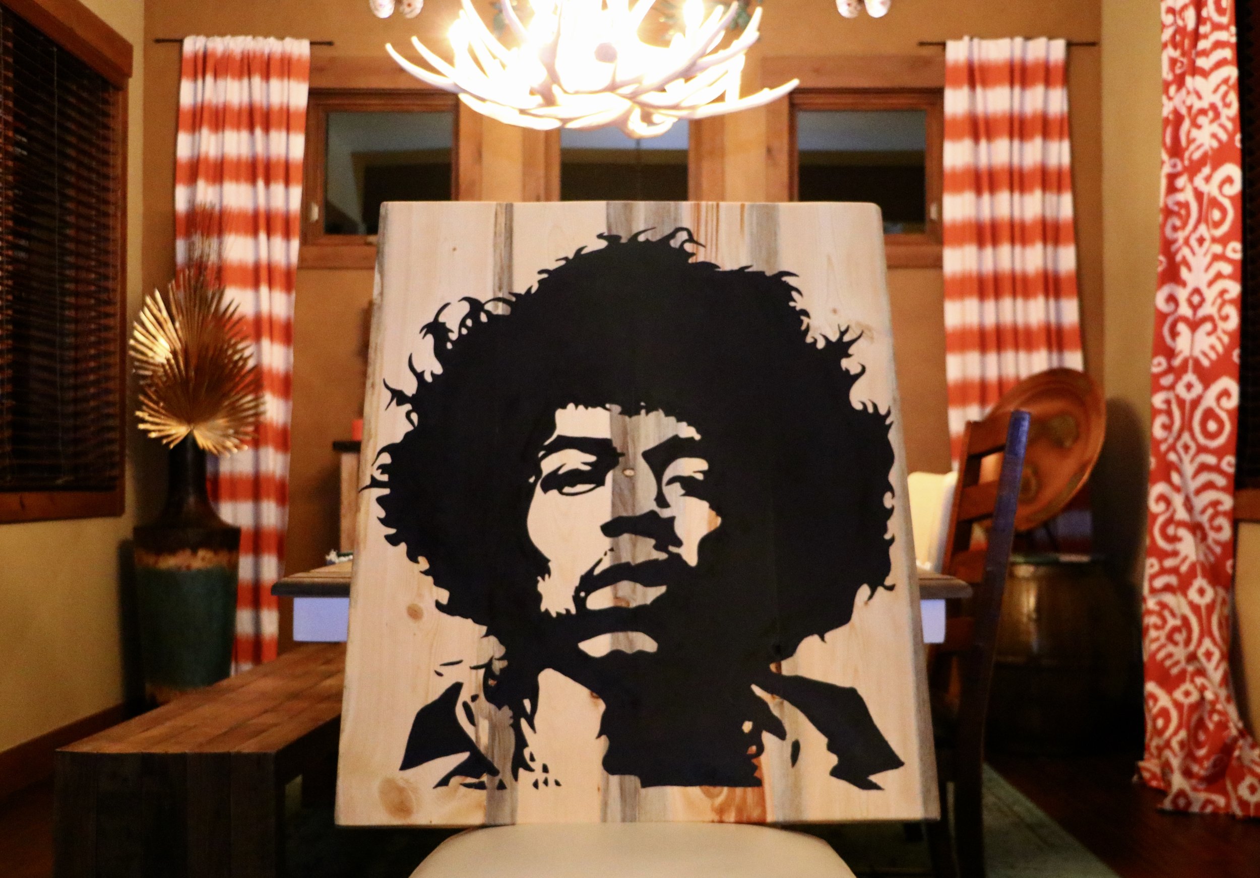 Jimi Hendrix Acrylic on Blue Stain Pine