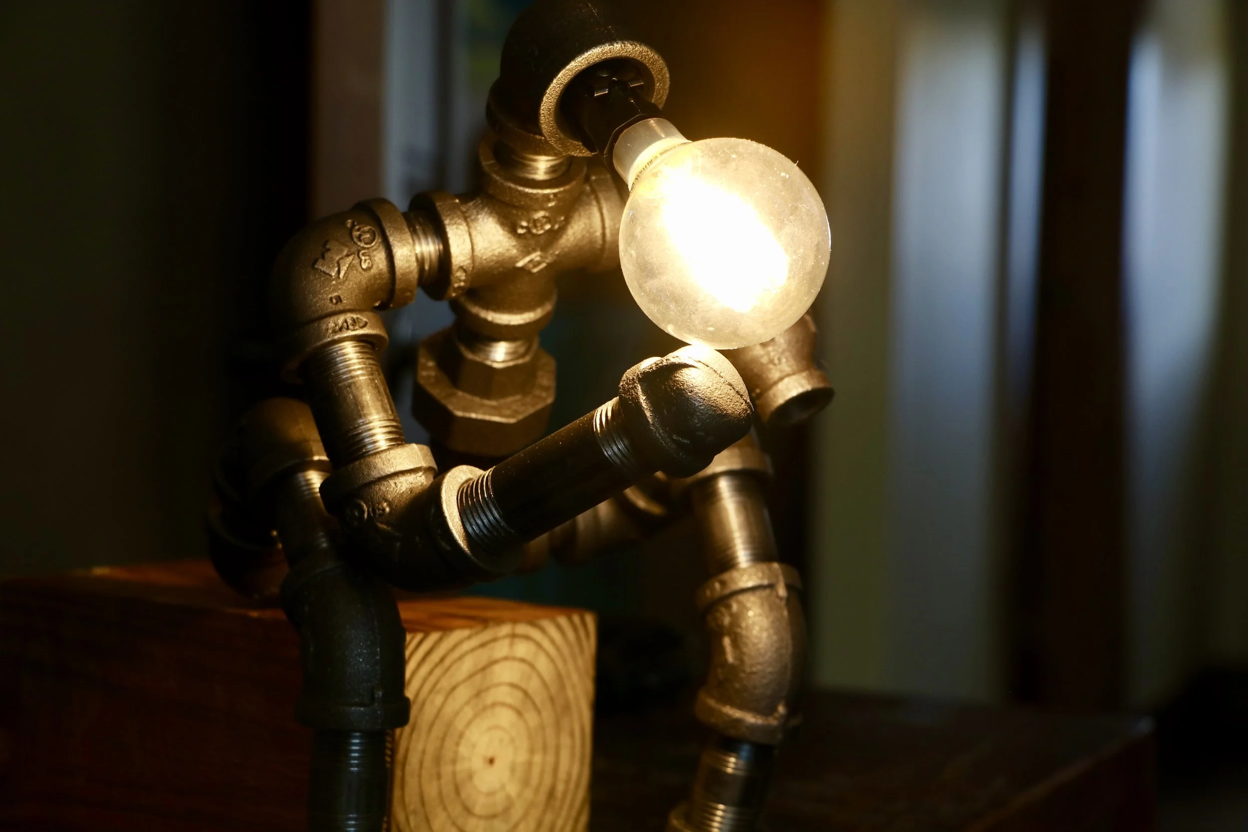 Medium: Black Iron Plumbing Pipe with Candelabra Light