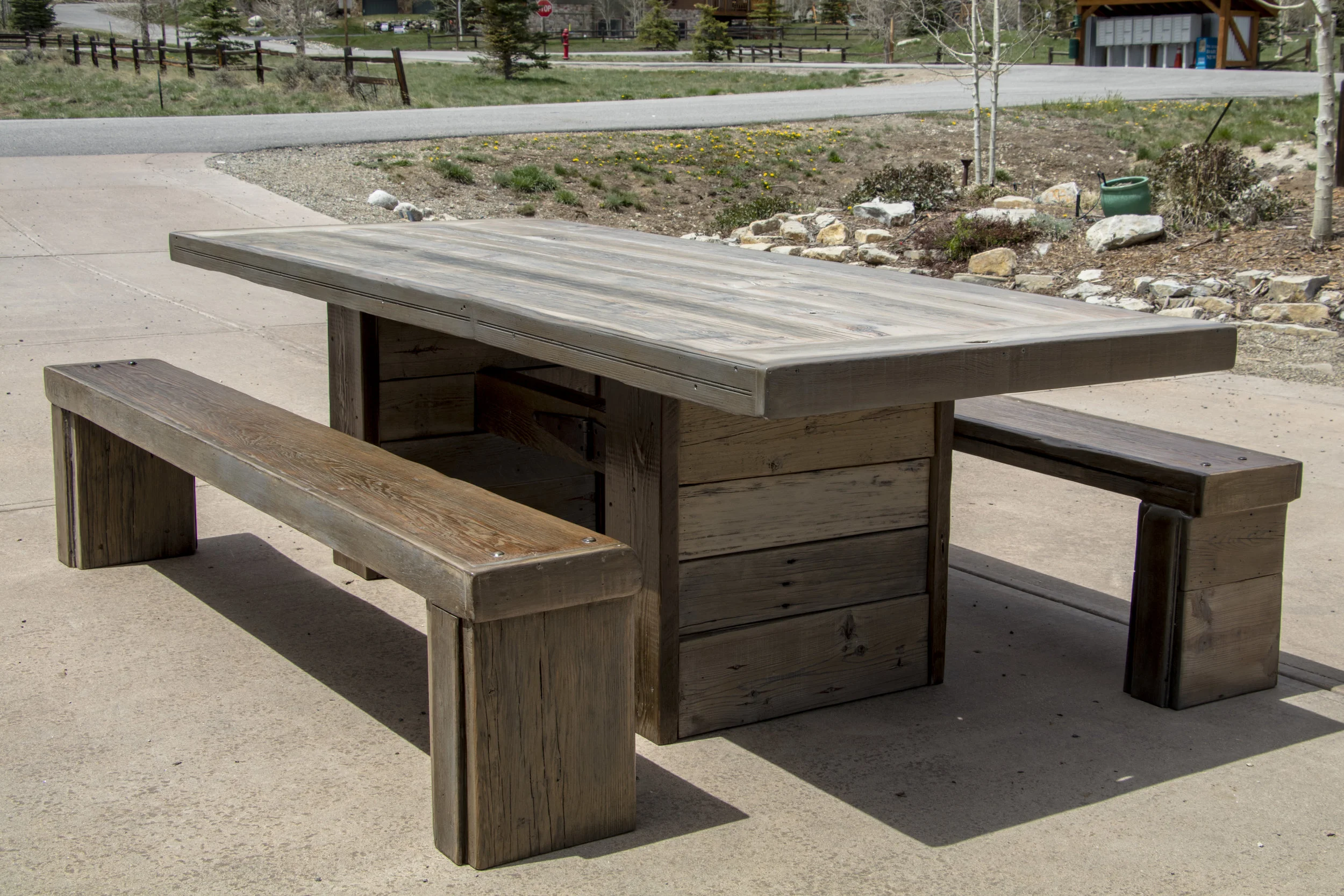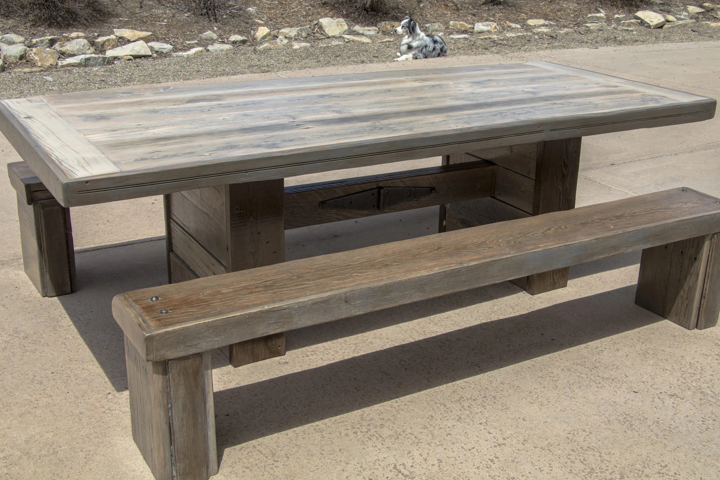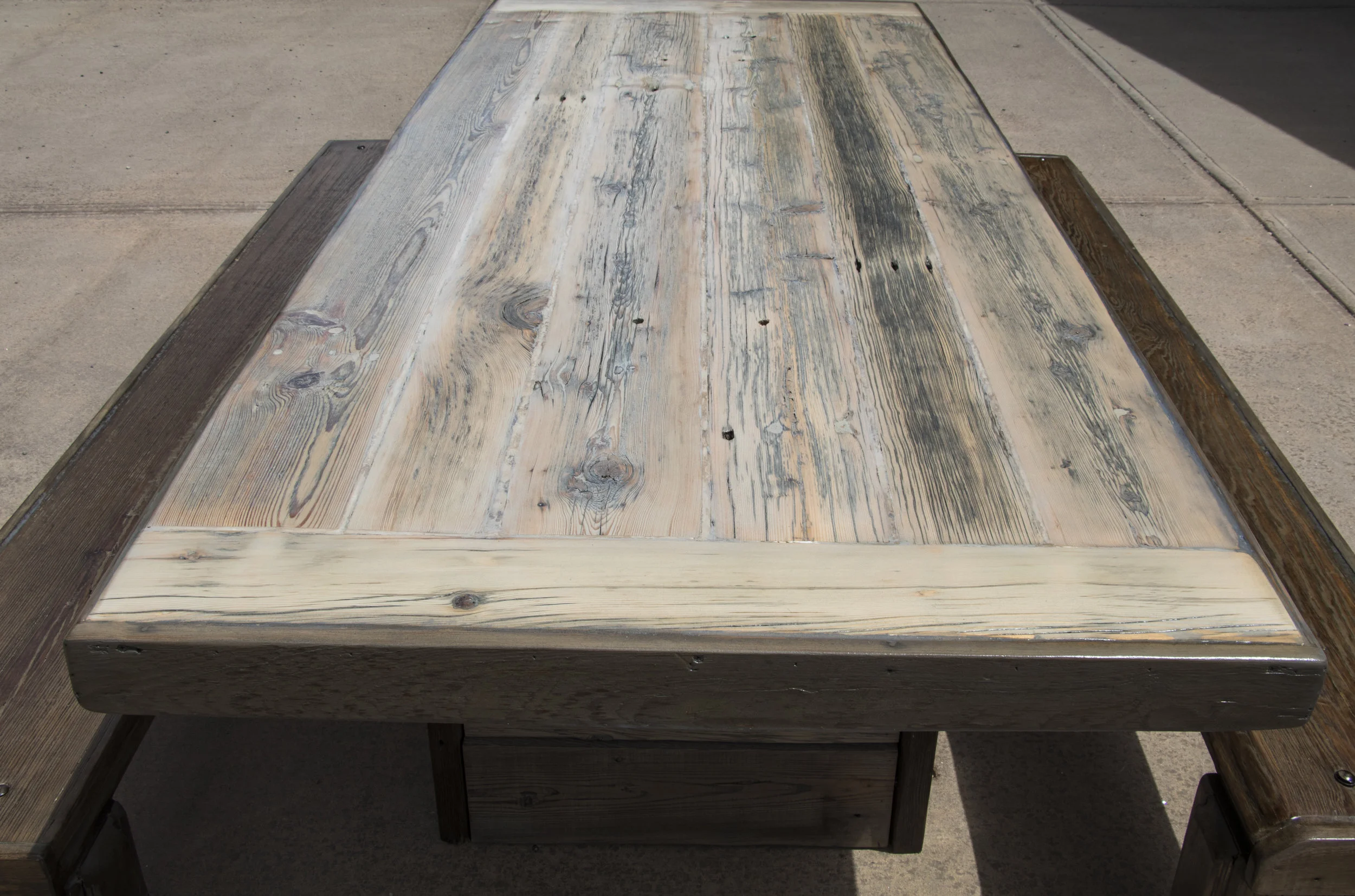 1800's Kansas Barnwood custom Dining Room Table & Benches